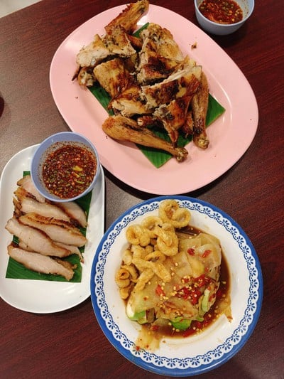 -ไก่ย่าง + น้ำจิ้ม ไก่ย่าง1ตัว 180฿ ไก่บ้านย่างมาแห้งๆหนักกรอบๆกร๊วบ หมักมาดีมากอร่อยหอมพริกไทย น้ำจิ้มหวานเข้ากั๊นมาก อร่อยขนาดที่ไปกัน2คนทานกันเกือบหมดตัว ทั้งที่สั่งอาหารมาอีกตั้ง6อย่าง -คอหมูย่าง ใช้หมูส่วนดีค่ะ -แกงคั่วหอยขม กะทิจะเยอะหน่อย ใส่เครื่องผักต่างๆข้าวโพดอ่อนมะเขือมาด้วย อร่อย -ตำหลวงพระบาง รสจัด หอมพริก -ลาบกุ้ง -เนื้อย่างก็เด็ด หมักมาดีเข้าเนื้อ ราคาดีค่ะดูเพิ่มเติม