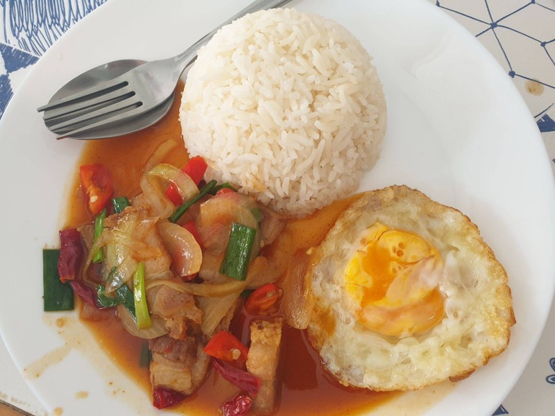 เป็นอีกร้านที่เหมาะกับนักศึกษาอย่างเราๆ ราคาไม่แพงมาก ตกจานละ 35-45-50 B ชื่อร้านมีคำว่ากระเพรา แสดงว่ากระเพราต้องเด็ด ผมสั่งกระเพราหมูมา ชื่นชมก่อน ว่าไม่ใส่หอมหัวใหญ่มาด้วย เพราะผมไม่ชอบกิน 55 ผัดกระเพราที่นี่จะเป็นหมูและใบกระเพรา ใส่พริก แค่นั้น ผัดแบบมีน้ำ ๆ ขลุกขลิกหน่อย ๆ พอคลุกกับข้าวสวย ราดพริกน้ำปลา เวิร์คมาก จริงถ้าสั่งพิเศษ กับ ไข่ดาวเพิ่ม ปริมาณจะดูเยอะขึ้นมาก น่าจะอิ่มสำหรับหลาย ๆ...อ่านต่อ