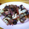 ร้านเปิดแต่เช้า อากาศเย็นๆ เข้ากันดีกับมื้อเช้าร้อนๆ มีเมนูให้เลือกหลากหลาย ตั้งแต่ติ่มซำนึ่งสด ซาลาเปา มาร้อนๆ โจ๊กมีทั้งหมูและปลา โรยต้นหอมซอย กระเทียมเจียว ใส่ไข่ เมนูที่ีไม่ค่อยเห็นในภูเก็ต คือหมูย่างเมืองตรัง ไม่แน่ใจว่าที่ตรังรสชาติเป็นยังไง ของที่นี่อบจนแห้ง มันเหลือบางนิดเดียว เนื้อหมูบางชิ้นอายแห้งจนแข็ง แต่หนังกรอบทุกคำ รสหมักได้กลมกล่อมอมหวานนิดๆ เคี้ยวเพลินแป๊บเดียวหมดจาน เหลือบเ...อ่านต่อ
