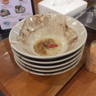เห็นสาขาดั้งเดิมที่แถวอนุสาวรีย์ ตอนนี้ขยายไปไดลถึงห้างต่างจังหวัด เลยแวะชิมหน่อย ชามเล็กเลยต้องสั่งจัดเต็ม เล็กตก เล็กยำ เพิ่มกากหมู แคบหมู แถมลูกชิ้นปิ้ง น้ำดื่มก็หลากหลายจัดไป ตบท้ายขนมถ้วยที่วางอยู่บนโต๊ะแล้วดูเพิ่มเติม