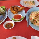 ข้าวผัดให้เยอะครับ สองคนแน่นเลย ไก่ทอดทอดมาแบบแห้งครับ ไม่อมน้ำมัน หมึกไข่นึ่งมะนาว หมึกไข่นึ่งลาดด้วยน้ำจิ้มซีฟู้ดครับ