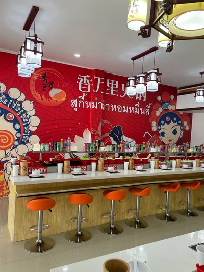 100% ของรีวิวบอกว่าร้านนี้เหมาะกับ หิวโซร้านสุกี้หม่าล่าสายพานอีกหนึ่งร้านในหลายๆร้าน ที่จันทบุรีในตัวเมืองรู้สึกจะ 4-5 ร้านแล้วมั้ง ร้านนี่อยู่แถวท่าช้างสังเกตง่ายอยู่ มาจากแยกเขาไร่ยาเจ้าตัวเมือง ร้านก็ดูเหมือนใหญ่นะ แต่เจ้าไปที่นี่วแคบๆเล็กๆจัง น้ำซุปบวกน้ำจิ้ม 49 บาทไม่อั้น เครื่องก็มีตามปกติ น้ำซุปมี 5-6 แบบมั้ง ทานสุกี้หม่าล่านี่ถ้าน้ำจิ้มดีก็ดีนะ ร้านนี้น้ำจิ้มสุกี้รสชาติยังไม่เท่าไหร่ แต่ตัวน้ำจิ้มสูตรของร้านโอเคดีอยู่ดูเพิ่มเติม