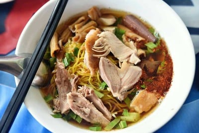 50% ของรีวิวบอกว่าร้านนี้เหมาะกับ เพื่อนฝูงได้โอกาสมาทำบุญถึงจังหวัดฉะเชิงเทรา และค่อนข้างไกลจากตัวเมืองมาก ทางคณะต้องหาอาหารทานกันก่อนไปทำพิธีหล่อพระพุทธรูป ผ่านมาร้านนี้เปิดแต่เช้า จึงลองแวะดู เป็นร้านอาหารข้างทาง คนทานเยอะพอสมควร ที่ร้านมีแต่เป็ด เช่นข้าวหน้าเป็ด ก๋วยเตี๋ยวเป็ด ส่วนตัวจึงสั่งก๋วยเตี๋ยวเป็ดเพราะอยากซดน้ำด้วย ตัวบะหมี่ธรรมดา เป็นเส้นกลมๆ ไม่ได้ว้าวมาก แต่เป็ดค่อนข้างดี ไม่ค่อยมีกลิ่นเท่าไหร่ เพื่อนอีกคนขอเบิ้นข้าว...อ่านต่อ