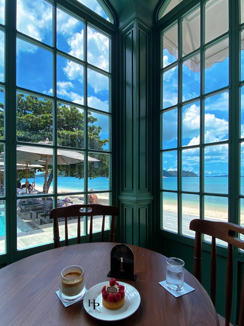 听说这家咖啡厅是由知名艺术家设计的,我觉得有点美女与野兽的童话风格,漂亮的玻璃房子最大限度的保留了室外的景色. 后面有个半开放式的厨房,可以看到甜品的制作过程,这家餐厅有一个非常热爱烘焙的主厨,而且我问了一下这家甜品都是低糖的,这非常友好. ⚜️Dirty Coffee (100泰铢):我喜欢dirty口感,热浓缩咖啡与冰牛奶的双重口感,每喝一口,会品尝到更多的奶味和甘甜,非常奇妙. 🔱Raspberry Tart(200泰铢):顶部的覆盆子里面有夹心,整体的不甜,口感清新,这个也是新品. 到了停车场之后需要坐酒店的接驳车去咖啡厅,景色好漂亮,沙滩干净,天气好的海是颜色是分层的,在这里一天也很不错.ดูเพิ่มเติม