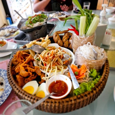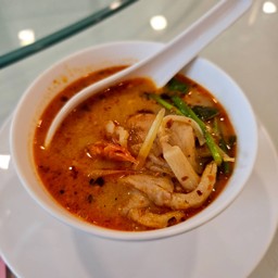 Tom Yam Kung (1) ภัตตาคารร้านต้มยำกุ้ง 1 สาขาเมืองย่างกุ้ง เป็นร้านอาหารไทยในพม่า เรามีโอกาสได้ไปลองร้านนี้เพราะไปตามโปรแกรมของ group tour เมนูที่ทาง group tour จัดให้เป็นเซ็ต ประกอบไปด้วย ไข่เจียว หมูปิ้ง ปลาทอดสามรส น้ำพริกปลาย่างและชุดผัก ขนมจีนแกงเขียวหวาน ปิดท้ายด้วยขนมหวานคือกล้วยบวดชี แต่วันที่ไปตรงกับวันเกิดน้องสาวเราพอดี เลยมีเค้กช็อคโกแลตเพิ่มเติมมา โดยรวมอาหารอร่อย รสชาติไม่แตกต่าง...อ่านต่อ