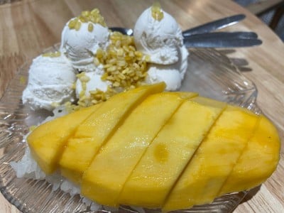 ร้านนี้ปกติเห็นคนแน่นเวลาผ่านทุกครั้ง พอดีทานข้าวเสร็จเร็วเลยแว้บไปดู มาเร็วเลยยังไม่มีคน จัดไปไอติม 6ลูก เครื่อง 3 เลือกเครื่องข้าวเหนียว เผือก และมัน ไอติมอร่อยหวานฉ่ำ ทานกับเครื่องยิ่งอร่อย มีทั้งที่นั่งห้องแอร์และข้างนอก มีน้ำให้ฟรี พนักงานสุภาพดีดูเพิ่มเติม