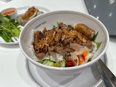 มิสไซง่อน สาขาเดอะมอลล์บางแค ชั้น G ลองทานอาหารเวียดนามร้านนี้ สั่งอาหารมาทานสองอย่าง เส้นหมี่หมูย่าง 85- ในชาม เส้นหมี่ หมูย่าง ผักต่างๆ และร้านได้ราดน้ำจิ้มลงไปเลย น้ำจิ้มมีรสชาตเผ็ดเค็ม อร่อยดี ปากหม้อหมู ไส้ด้านในมีหมูสับและผักกะหล่ำ เสริฟ์พร้อมผัก โรยหอมเจียวและหมูยอ อร่อยใช้ได้เช่นกันดูเพิ่มเติม