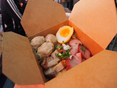 บะหมี่เกี้ยวกุ้งหมูแดงหมูกรอบ ไข่ 100 บาท