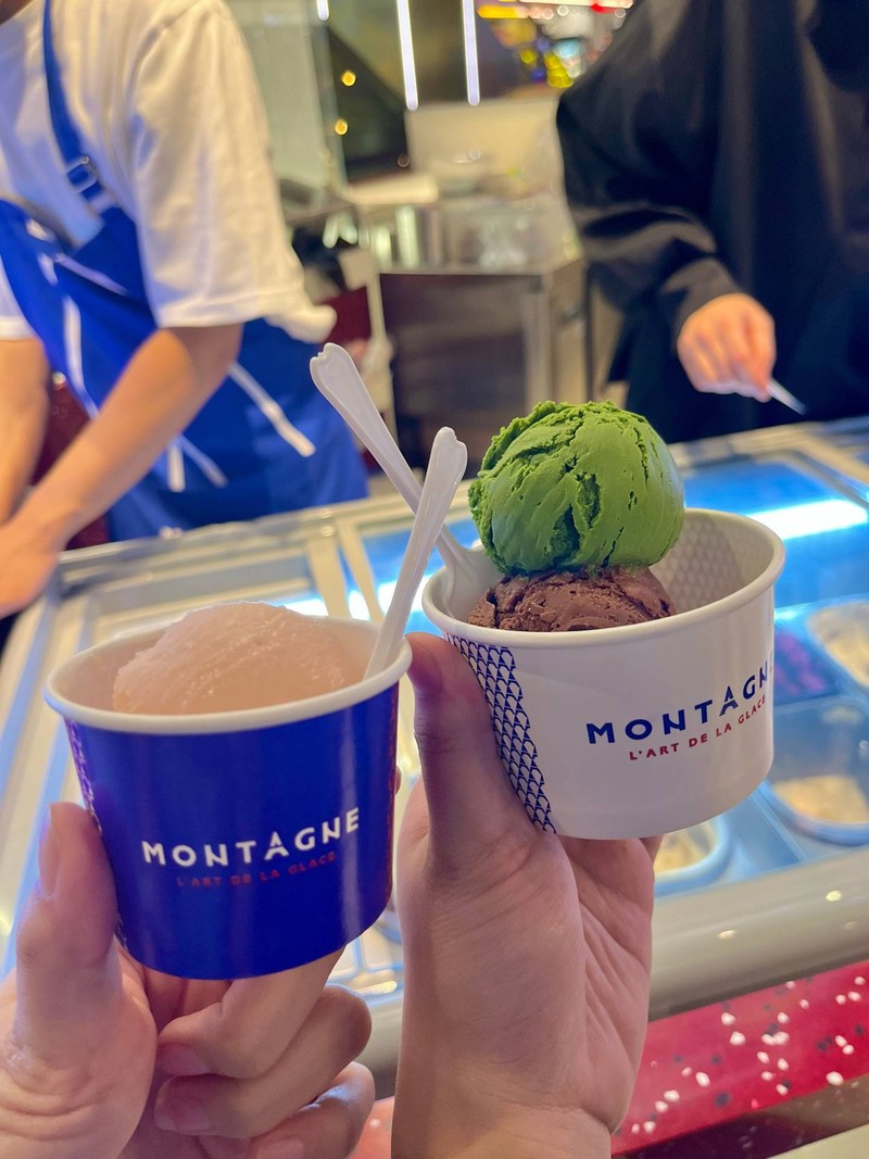 ร้าน Montagne L'art De La Glace เป็นร้านไอศกรีมและของหวานสไตล์ฝรั่งเศสของเชฟปูน แชมป์รายการ Sweet Chef Thailand สาขาหลักจะอยู่ที่ถนนเจริญราษฎร์ แต่วันนี้กุ๊กไก่มาที่สาขาเอ็มสเฟียร์ ตั้งอยู่ที่ชั้น G โซนบันไดเลื่อนหน้ากูร์เม่ต์ สาขานี้เป็น pop up เล็กๆ เน้นเมนูไอศกรีมและ cake box ที่ take away ง่ายๆมากกว่าค่ะ ไอศกรีมของสาขานี้มีให้เลือกเยอะไม่แพ้สาขาหลักเลย ยี่สิบกว่ารสได้ สามารถชิมก่อนเลือกไ...อ่านต่อ