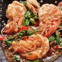 กะเพราถาดพริกแห้งสูตรคุณแม่(ใช้ข้าวหอมมะลิแท้ตราไดโนเสาร์)