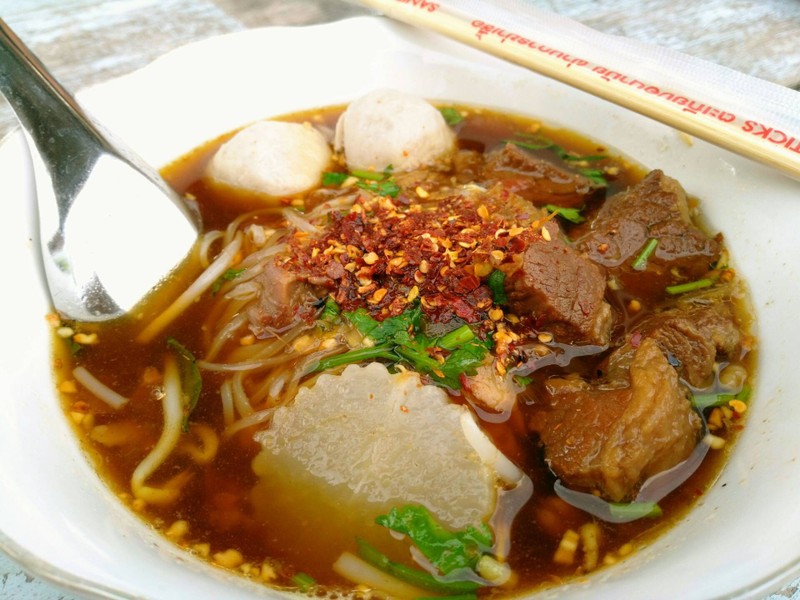 ร้านนี้อยู่ในตลาดน้ำคลองแดนค่ะ ลูกค้าส่วนใหญ่เป็นมุสลิม เราสั่งเส้นเล็กเนื้อเปื่อย รสชาติดีเลยทีเดียว เนืี่อเปือยนุ่มกำลังดี รสชาติแทบไม่ต้องปรุงเลยค่ะ กลมกล่อมดี เราสั่งพิเศษ 50 บาท ราคารับได้นะ ถ้าเทียบกับบรรยากาศและสถานที่ สำหรับที่นี่เมื่อทานเสร็จต้องเอาภาชนะคืนให้แม่ค้าด้วยนะคะ แนะนำว่าซื้อร้านไหนให้หาที่นั่งทานใกล้ๆค่ะ เพราะตลาดค่อนข้างกว้างดูเพิ่มเติม
