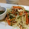 มาทำธุระที่มาบุญครอง แวะหาข้าวเที่ยงกินก่อนจะไปกินของหวานกันต่อ สั่งเป็นชุดข้าวเหนียวคีนัว ส้มตำ ไก่ย่างเจ (215.-) ส้มตำขอรสเผ็ดไม่เอาหวาน ก็มีรสเผ็ดเด่นมาตามต้องการ รสชาติใช้ได้ไม่โดดเด่นถึงขั้นอร่อยติดใจ ไก่ย่างเจเป็นเต้าหู้ก็นุ่มดีนะ กินกับข้าวเหนียวคีนัวและน้ำจิ้มก็อร่อยดี เพื่อนสั่งซีซ่าร์สลัดมา บอกรสชาติจัดเกินไป ไม่ค่อยอร่อยเท่าไหร่ ค่าอาหารมีบวกเซอร์วิสชาร์จอีก 10%ดูเพิ่มเติม