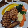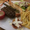 ร้านใหญ่โตมากครับ โซนข้างนอกก็สวยน่านั่ง สเต๊กหมู+ไส้กรอกโรมาเนีย - จานนี้แนะนำเลย ทุกอย่างบนจานอร่อยมาก ฟักทองพิวเร มันบด ผักโขม ไส้กรอก หมูนุ่มมาก ทีโบนสเต๊ก - เหนียวครับ น่าผิดหวัง คาลามารี่ - ส่วนตัวคิดว่าราคาจานนี้แพงไปหน่อยดูเพิ่มเติม