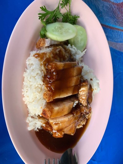 ข้าวหมูกรอบ น้ำราดรสชาติกลมกล่อมต้องที่นี่ จริงๆ น่าจะเป็นร้านเดียวกับ ช.โภชนา แต่ในส่วนนี้จะเปิดช่วงเย็นและคนขายคนละคน แต่รสชาติเหมือนกันเป๊ะ ส่วนเกี๊ยวน้ำ รสชาติดี ใช้พริกน้ำปลาในการปรุงรส มันเด็ดจริงๆ แต่สำหรับบางคนที่ไม่ชอบกลิ่นพริกไทยอาจจะไม่ชอบ เนื่องจากหนูหมักไส้ของตัวเกี๊ยวของร้านจะมีกลิ่นพริกไทยค่อนข้างแรงไปหน่อยดูเพิ่มเติม