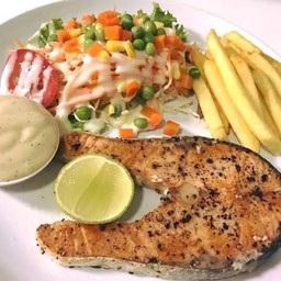สเต็กเนื้อนุ่มมากกก เห็นในเมนูมีสเต็กแซลมอน แต่สั่งมาไม่เหมือนในภาพกลายเป็นชุบแป้งทอดมิใช่รมควัน ชีสบอลอร่อย ยืดดดดดด แอบมีหนึ่งลูกไม่ใส่ชีส เศร้าแทน บรรยากาศดี คนเยอะเลยรอนานอ่านต่อ