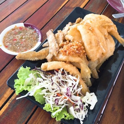 อาหารอร่อยมากกก หอยแมลงภู่สด น้ำจิ้มแซ่บ ราคา 200 แกงเผ็ดเนื้อปูใบชะคราม ราคา 300 คือเนื้อปูเยอะมากๆ ชิ้นโต แกะมาอย่างดี ทานคู่กับขนมจีนที่ให้มาคือเพลินมาก ปลาทรายทอดกระเทียมก็กรอบอร่อยสุดๆ ราคา 220 แยกก้างมาให้ ก้างก็กรอบจนกินได้ดูเพิ่มเติม