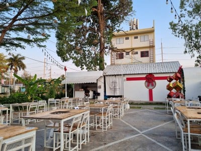 100% ของรีวิวบอกว่าร้านนี้เหมาะกับ เพื่อนฝูงร้านนี้เป็นร้านหมูกระทะ ติดคลองเล็ก ๆ ใกล้ ตลาด RN YARD ส่วนตัวรู้สึกไม่ ว๊าวนะ หน้าร้านตกแต่งน่ารัก อาคารโทนสีขาว แต่ภายในร้านมันดูดรอปลงเยอะ โต๊ะไม้ยางตากแดดมันก็จะเป็นราดำ ส่วนอาหารก็กินดี ถูกปาก ราคาแอบแรงแต่ปริมาณเยอะ น้ำจิ้มธรรมดาไปนิดนะดูเพิ่มเติม
