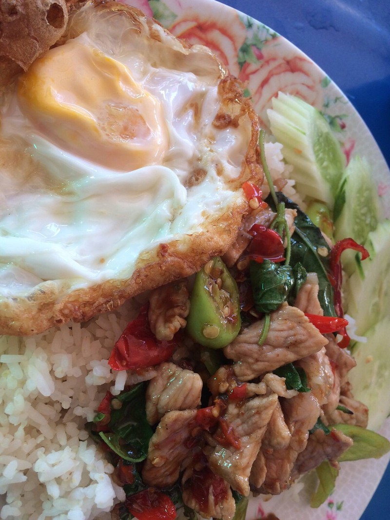 แวะข้างทาง ร้านไม่ค่อยเปิดกัน ##สถานที่ ขอดรถหน้าร้าน ไม่มีห้องแอร์ มีอาหารอีสาน ##อาหาร กระเพาหมู ไข่ดาว กระเพาไม่ใส่ซีอิ้วดำ มีพริกน้ำปลา หั่นให้ใหม่ๆ มีน้ำซุปที่มาพร้อม กระดูกหมู 1 ชิ้น แต่จืดไปนิด ##สรุป พอได้ดูเพิ่มเติม