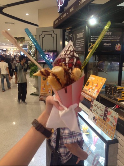 ขนมชูโรสขึ้นชื่อสุดฮิต ร้านนี้ตั้งอยู่ชั้น G ติดกับร้าน wawa เมนูที่สั่งเราสั่งเป็นชอคโกแลตอัลมอนด์ รสชาติกรุบกรอบกำลังดี มันเข้ากันมาก และที่เปนแบบโรยน้ำตาลอย่างเดียวก้ออร่อย พอดีเค้ามีให้ชิมเลยแอบชิมจ้า จะแวะไปทานอีก แน่นอนคะดูเพิ่มเติม