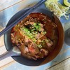 พอดีกะจะไปทานร้านน้ำเงี้ยวป้าสุขเเต่ที่จอดรถเต็ม+คนเยอะเลยได้มาทานร้านนี้เเทนตั้งอยู่ไม่ไกลกัน ร้านมีให้เลือกระหว่างหมูกับเนื้อ เเละก็ เส้นขนมจีนกับเส้นเล็กเเบบดั้งเดิม เราเลยจัดมาอย่างละหนึ่ง ส่วนตัวชอบเเบบเส้นเล็กดั้งเดิมมากกว่าเเนะนำให้บีบมะนาวทานคู่ผักดองของทางร้านเเละเเค๊ปวัวดูเพิ่มเติม