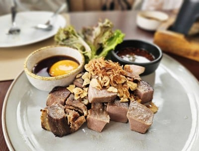 เป็นร้านที่ perfect มากๆร้านหนึ่ง ปกติเราจะไม่คิดกลับมากินร้านซ้ำ แต่ร้านนี้คือ ยังไงก็ต้องกลับมา เนื้อ ดี มากกก เนื้อวัวสุดยอดมาก รังสรรค์อาหารแต่ละจานออกมาได้สมบูรณ์แบบมาก และทำออกมาในราคาที่ย่อมเยา เนื้อวัวจานละ 180 บาท 😳 ribeye 680 บาทกินแทบไม่หมด เราสั่งมาประมาณ 10 จาน อร่อยทุกจาน รสชาติมหัศจรรย์มากกกก ✨ เนื้อย่างดีมากๆ medium rare คือ คุมอุณหภูมิกับคุณภาพได้ทุกจาน อร่อยตั้งแต่คำแรกยันคำ...อ่านต่อ