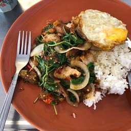 ร้านจอดรถริมถนน ไม่มีเครื่องปรับอากาศ บรรยากาศร้านริมถนนธรรมดา ค่อนข้างร้อน แต่ดูสะอาดดี แม่ค้าดูไม่ค่อยอยากบริการเท่าไหร่ มีทั้งอาหารตามสั่ง ก๋วยเตี๋ยวและ ขาหมู แม่ค้ามีเงื่อนไขในการสั่งอาหารค่อนข้างเยอะ ผัดกะเพราหมูกรอบรสชาติโอเค อาหารได้ค่อนข้างเร็วดูเพิ่มเติม