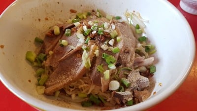 20% ของรีวิวบอกว่าร้านนี้เหมาะกับ หิวโซร้านนันทวรรณ ตั้งอยู่ที่ปากซอยเจริญนคร 55 ตรงหัวมุมปากซอย ร้านนี้มีเมนูอาหารให้เลือกหลากหลายตั้งแต่ข้าวขาหมู อาหารตามสั่ง ก๋วยเตี๋ยวเป็ด ถ้าไปตอนคนเยอะๆต้องอ่านกฎกติกาของทางร้านที่แปะไว้บนข้างฝาให้ดี วันนี้ลองทานบะหมี่เป็ดทางร้านมีแต่เนื้อเป็ดล้วนไม่มีเครื่องในและเลือดใส่มาให้ สั่งแห้งจะมีน้ำซุปมาให้รสชาติออกเค็มนิดๆซดแล้วต้องขอชื่นใจดี ตัวเนื้อเป็ดพะโล้ ไม่ค่อยนุ่มเท่าไหร่มันเหมือนหั่นไว้นานแล...อ่านต่อ