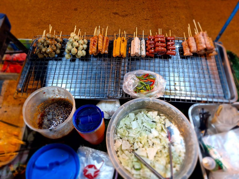 ลูกชิ้นปิ้งเตาถ่าน-ป้าอ่อนและขนมปังปิ้งเตาถ่าน