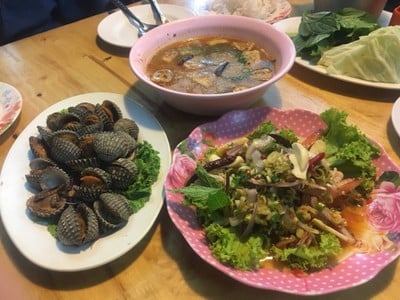 ซุปมะเขือ จะเหมือนๆตำมะเขือของทางเหนือแต่จะเผ็ดกว่า ดีค่ะ ทะเลลวกจิ้ม น้ำจิ้มออกหวานหน่อยๆ ส่วนตัวชอบหวานอ่อนๆหน่อยจะดีค่ะ ส่วนตำหอยแครง+กุ้ง ใช้ได้ค่ะ อร่อยไม่เผ็ดมากดูเพิ่มเติม