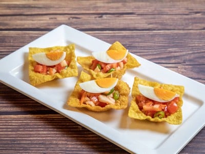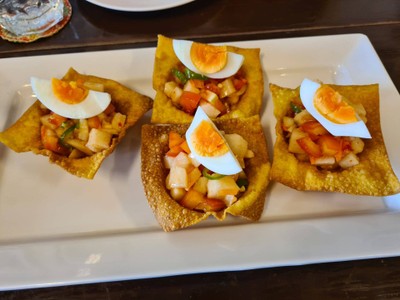 จับ ฉ้ายแช้ (หรือ ที่เรียกติดปากว่า ฮูแช้ ) มาแต่งตัวใหม่ ให้รสจัดขึ้น ใส่ในถ้วยเกี๊ยวทอดกรุบกรอบ กินเพลิน - Local salsa in crispy wonton cup