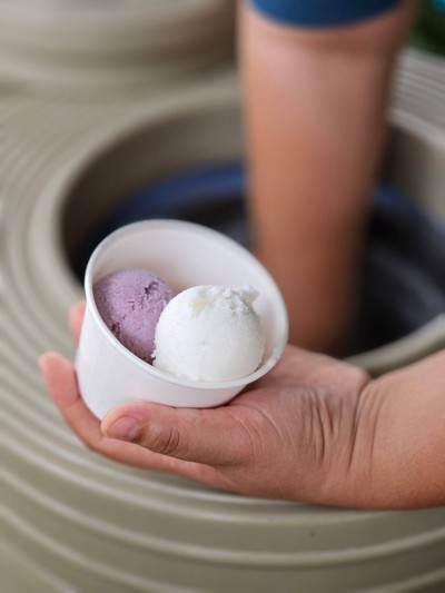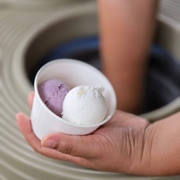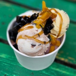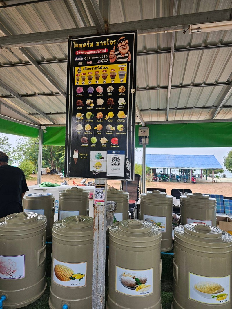 ร้านจะอยู่ตรงทางไปหาดทองหลาง เป็นร้านข้างทาง แต่มีโต๊ะให้นั่งข้างๆ มีให้เลือกหลายรสชาติ เราซื้อแบบ 5 ลูก 40บาท ตักเครื่องได้ไม่อั้น วนิลาช็อกชิพ ช็อกชิพ นมสด บลูเบอร์รี่ โยเกิร์ต รสชาติหวานนำ แนะนำสั่งรสผลไม้ จะมีเปรี้ยวมาตัดดูเพิ่มเติม