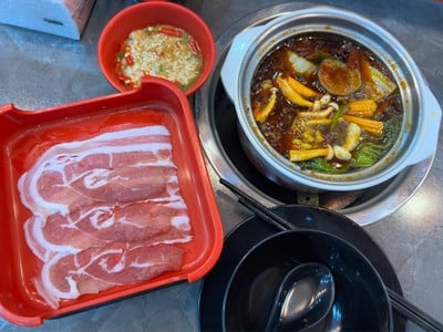 100% ของรีวิวบอกว่าร้านนี้เหมาะกับ เพื่อนฝูงร้านอยู่ตรงC park มีที่จอดรถด้านหน้าร้าน เป็นชาบูสายพานแบบบุปเฟ่ต์สไตล์ฉงชิ่ง ราคา 199฿ ทานได้ 1.30 ช.ม.ไม่รวมเครื่องดื่ม ไอศครีม และน้ำซุป น้ำซุปไก่ฟรี ส่วนน้ำซุปอื่นๆ ราคา 49฿ (เลือก 2 น้ำซุป+10฿) มีให้เลือกหลายอย่าง ซุปหมาล่าแบบเผ็ดน้อย/ซุปหมาล่าแบบเผ็ดมาก/ซุปมะเขือเทศ/ซุปน้ำดำ/ซุปกระดูกหมู เสิร์ฟเป็นหม้อแยก แบบส่วนตัว เครื่องชาบูหลากหลายดี ผักมีหลายชนิด ลูกชิ้นเยอะ เนื้อสไลด์มี1 แบบ หมูมี ...อ่านต่อ