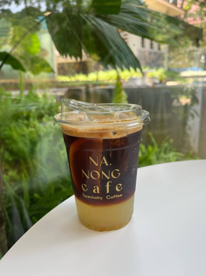 ร้านคาเฟ่ที่อยู่ตรงบ่อน้ำร้อนรักษะวาริน ใกล้ๆร้านอาหารคุ้นลิ้น ไหนๆมาแล้วแวะลองสักหน่อย ตัวร้านมีเป็นร้านกระจกมินิมอล ทรงโปร่งๆ เข้ามาแล้วรู้สึกชิลด์ดีค่ะ แต่ที่นั่งไม่เยอะมากนะ เมนูที่เราสั่งคือ Na Nong Signature Coffee ราคา 100 บาท อร่อยมาก ใช้หลอดทานไม่ได้ต้องยกดื่ม เป็นนมนัวๆหอมคาราเมล ทานคู่กับฟองนมกาแฟด้านบน ชอบมาก ส่วนของเพื่อนเราจะเป็น Yuzu Espresso และ Iced Americano ค่ะ ถือเป็นคา...อ่านต่อ