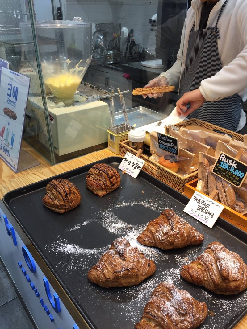 เห็นมีนักศึกษาที่นั่นแวะซื้อเลยลองบ้าง เป็นขนมปังกรอบๆยัดไส้ครีมคัสตาร์ดอะไรแบบนี้ เหมือนพวกขนมญี่ปุ่น ชิ้นละน่าจะ3000วอน ก็จะอร่อยกว่านี้ถ้าไม่เจอแป้งเก่า ทำให้เสียรสชาติไปได้ แต่ก็อร่อยดีแป้งมีกรุบๆเหมือนน้ำตาลด้วยดูเพิ่มเติม
