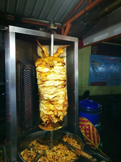 เดินกาดกองต้า หาของกินเล่นไปเรื่อยเปื่อย ผ่านร้านนี้เห็นคนมุงกัน อ๊ะไม่ได้สิ ขอร่วมวงมุงด้วย ร้านขายแซนด์วิชดูไบ หรือก็คือเคบับนั่นเอง มีหลายไส้ให้เลือก ทั้งไข่ ปูอัด ไก่ เนื้อ และกุ้ง ลองไส้ไก่ (30฿) ไส้ไก่จะเป็นไก่บนกริล แต่ไส้อื่นๆ จะใส่กล่องไว้ค่ะ ไส้มีไก่ ผัก และซอส ไส้แน่นดีค่ะ ซอสอร่อย ทานเพลินๆ ดีค่ะดูเพิ่มเติม