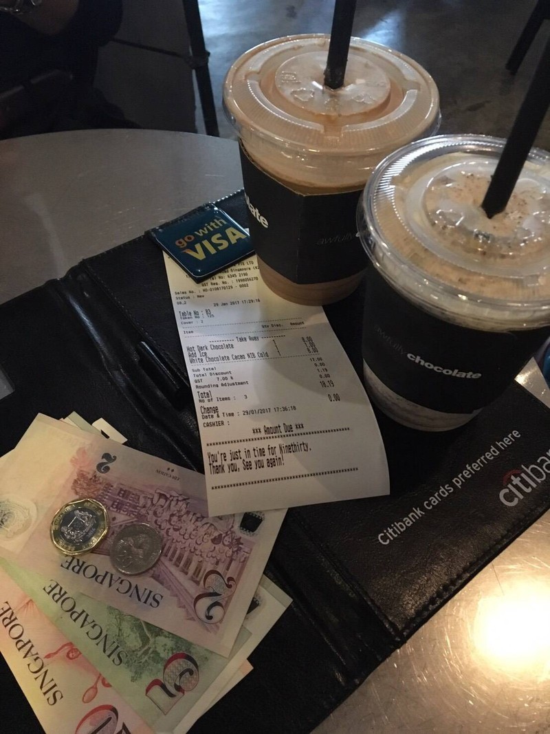พักท้องอีกครั้งด้วยการตามหาร้านนั่งชิวเพื่อทานชา-กาแฟ เดินมาเจอร้าน Awfully Chocolate หัวมุมถนน Joo Chiat ตัดกับ ถนน East Coast ดูภายนอนแอบ Classic ดี ลองเดินเข้าไปดู โอ้ว บรรยากาศภายในใช้ได้เลย ดู modern ใช้ได้เลย ลองสั่ง signature cup คือ Dark Chocolate (เย็น เพิ่มน้ำแข็ง 1$ เพราะเมนูนี้มีแต่ร้อน T-T) รสชาติไม่หวานมาก ใช้ได้ๆ อีกถ้วยที่สั่งมาคือ White Chocolate Cacao Nip เป็น frappe อันนี้แอบ...อ่านต่อ