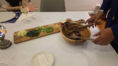 ร้านอาหารไทยปักษ์ใต้ แนวฟิวชั่น มีที่จอดรถด้านหน้า ร้านเป็นบ้านโบราณของหมอมี ต้องเดินขึ้นบันได 1 ชั้น มีห้องส่วนตัว โต๊ะยาวนั่งได้ 12 คน เรามากัน 6 คน มาถึงมีWelcome Drink เสริฟให้ดื่มก่อน อาหารรสชาติอร่อยเเป็นเอกลักษณ์ของร้าน เริ่มจากชุออเดิร์ฟ สี่อย่าง แล้วต่อด้วยข้าวยำ ชุดขนมจีนสามน้ำยา ปลาหมึกผัดน้ำดำ หมูฮ่องไข่พะโล้ กุ้งผัดสะตอ หมูทอด ฯลฯ ตบท้ายด้วยขนมหวานสั่งมาหลายอย่างแบ่งดันทานดูเพิ่มเติม