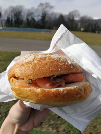 ลงเครื่องที่สนามบิน Geneva ก็เริ่มหิว เดินผ่านร้าน Bagel นี้เลยแวะซื้อมารองท้องคลายหิวสักหน่อย เป็นร้านเล็กๆจะอยู่ตรงข้ามกับ SBB ไม่มีที่นั่งทาน ขายพวก bagel และน้ำผลไม้ต่างๆ น้ำผลไม้ดูท่าจะสดดี แต่ไม่ได้ลอง ลองแค่ Bagel saumon fumé ก็คือ salmon รมควันนั่นเอง ราคา 7.9 CHF ตีเป็นราคาไทยประมาณ 260 บาท ถือว่าราคาโหดอยู่ เพราะค่าครองชีพที่นี่สูงมาก แต่คุณภาพโอเคเลย ให้แซลมอนมาเยอะมาก หอม อร่อย แน่น...อ่านต่อ