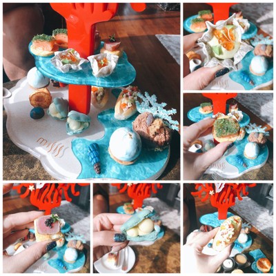 ห้องนี้คล้ายๆเป็นบาร์ กับที่นั่งดื่มชิลล์ ช่วงบ่ายมี Afternoon Tea สั่งทานได้ถึง 17.00 ช่วงที่ไปประมาณบ่าย3 คนเยอะพอสมควร เซ็ทชาจะมี 2 แบบให้เลือก คือ Western Set กับ Thai Set เดือนนี้จะเป็นธีมท้องทะเล ทำออกมาได้ดี สวยงาม อาหารจะมีทั้งคาวหวาน รสชาติกลางๆ ขนมสวย จัดมาดี ทานกับชาคือเข้ากัน เครื่องดื่มสามารถสั่งเป็นชา หรือ กาแฟ (ร้อน เย็น) ได้หมด แต่เป็นชาร้อนจะเข้ากันสุดค่ะ ตัดความหวานของขนมได้ดูเพิ่มเติม