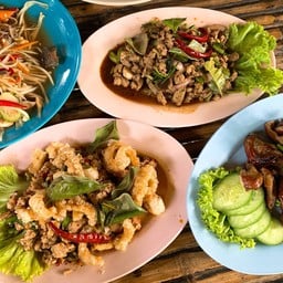 ไม่ได้มากินที่ร้านนี้นานมาก ตั้งแต่ช่วงมีโควิดใหม่ๆ ไม่ได้มาอีกเลย สั่งเมนูเดิมๆ อาหารอร่อยเหมือนเดิม มาช่วงกลางวันคนแน่นเต็มทุกซุ้มเลย วันนี้มาช่วงบ่าย ซุ้มเริ่มว่าง เมนูที่สั่ง -คอหมูย่าง -ตำปูปลาร้า -ลาบเป็ด อร่อย -ลาบกรอบ เมนูนี้ทางร้านจะตัดหวานมา ถ้าไม่ทานหวานให้แจ้งตอนสั่งเลยค่ะ -หมูแดดเดียว ปล.ความชอบรสชาติที่แตกต่างกัน ต้องมาลองทานกันเองนะคะ😉😉ดูเพิ่มเติม