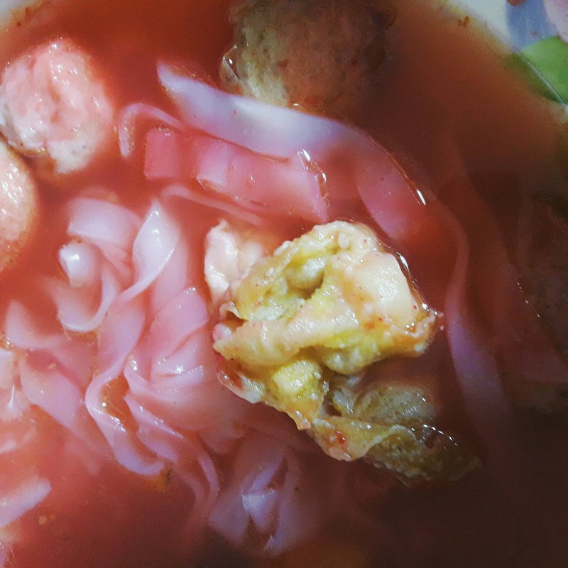 🍛 เมนู: เย็นตาโฟ 😋 รสชาติ: 2/5 ⏲ เวลาเปิด: N/A 💸 ราคา: 35฿ 👯 บริการ: 3/5 🏡 ความสะอาด: 4/5 🌬 บรรยากาศ: 3/5 เส้นนิ่มดีแต่ติดกันเป็นก้อนๆ เครื่องน้อยมาก น้อยจนตกใจ มีหมูเด้งสัมผัสแป้งมาก1ลูก ลูกชิ้น1ลูก ปลาเส้นทอด2แว่น อะไรไม่รู้เป็นแป้งสอดใส้แป้งห่อๆ1ตัว รสชาติจืดต้องปรุงเพิ่มค่ะดูเพิ่มเติม