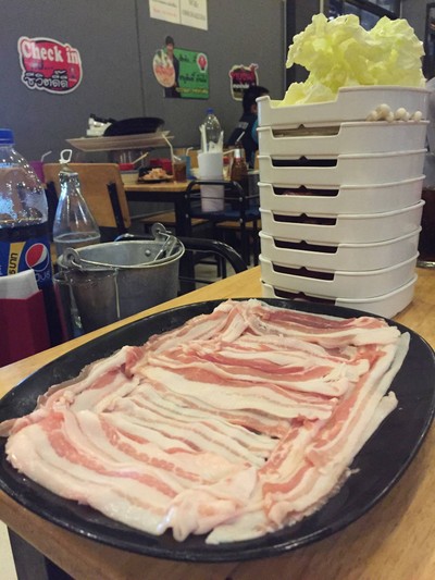 วันนี้มาหาของกินที่บ้านไผ่เจอร้านน่าสนใจเลยแวะมาลอง เป็นบุพเฟ่ หัวละ 199 ไม่รวมน้ำครับ ของในบุพเฟ่ก็โอเค ไม่แย่ครับ แต่ปัญหาคือน้ำจิ้มครับ แบ่งเป็น 2 อย่างคือ หวาน(ซอสพริก) น้ำจิ้มซีฟู๊ด พอกินแล้ว ไม่ได้เรื่องทั้ง 2 อย่างเลย อย่างน้อยผมว่าน่าจะหาน้ำจิ้มให้แด้เท่า MK คับ บอกเลยรสชาติไม่ให้ผ่านครับ ของในบุพเฟ่พอได้ครับดูเพิ่มเติม