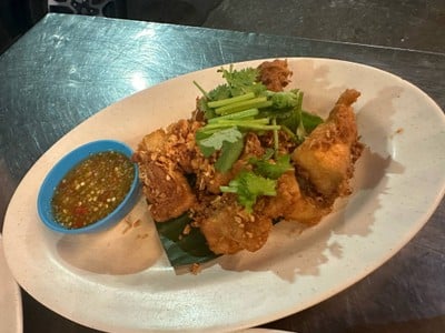 ร้านข้าวต้มที่ผ่านมากี่ครั้งก็มีคนนั่งทานตลอด ได้มาลอง ก็สั่งเยอะจุกๆ ขาหมูสามรส (90.-) ~ หวานนำ เผ็ดปลาย ไม่ค่อยเข้มข้นแต่ทานเพลิน แขนงหมูกรอบ (80.-) ให้แขนงมาค่อนข้างเยอะ รสชาติดี แต่หมูกรอบเหนียวไปหน่อย หอยลายผัดพริกเผา (80.-) เข้มข้นพริกเผา หวานนำ น้ำเข้มข้นจริง อร่อยดีค่ะ ปลากะพงทอดกระเทียม (80.-) เสิร์ฟพร้อมน้ำจิ้มซีฟู๊ด ปลากระพงเป็นชิ้นๆ กรอบนอก นุ่มใน โรยกระเทียมมากจุกๆ ดีมากกกก ยำ...อ่านต่อ