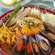 เดินทางจากบางระจัน สิงห์บุรี ไปวัดม่วง อ่างทอง ดูร้านนี้น่าแวะเพราะมีฟาร์มเมล่อน เห็นเมนูผัดไทยดูหลากหลาย แปลว่าร้านคงต้องทำผัดไทยอร่อยแน่ๆ เพิ่มเติมคือกุ้งแม่น้ำ สปาเก๊ตตี้คาโบนาร่า ไม่เลวเลย รสชาติดี ปลาผัดเปรี้ยวหวาน เนื้อปลาชิ้นใหญ่ๆ หนาๆ วันที่ไปเมล่อนยังไม่พร้อมรับแขก อดเข้าไปชมเลยดูเพิ่มเติม