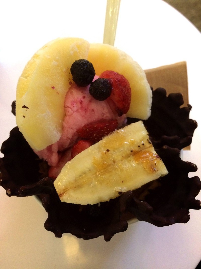 วันนี้วันครบ ๑ ปี การเสด็จสวรรคตของพระบาทสมเด็จพระปรมินทรมหาภูมิพลอดุลยเดช จุฬาลงกรณ์มหาวิทยาลัยเชิญชวนมาจุดเทียนรำลึกถึงพระองค์ท่านที่อุทยาน ๑๐๐ ปี เราก็นัดเจอเพื่อนๆที่จามจุรีสแควร์ มาก่อนเวลาเลยมาหาของเย็นๆหวานๆหม่ำ เห็นที่นี้มี ไอศกรีมสำหรับเทศกาลเจ ดูน่ากินมาจึงจัดไป 2 ลูก 149 บาท ผลไม้ท็อปมาเพียบ อร่อยดูเพิ่มเติม