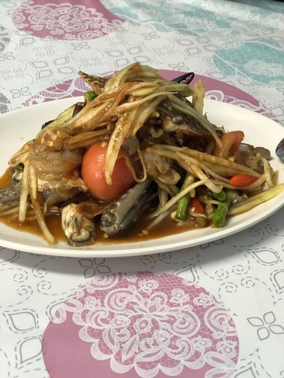 น้ำปลาร้าเข้มข้นมากเว่อร์ แซ่บสะใจ เหมาะกับคนชอบซดน้ำปลาร้าแบบเรา ฟรินมาก ยิ่งกินกับแซลมอน ที่ตอนแรกคิดว่าจะเข้ากันหรอ กลายเป็นว่าอร่อยแซ่บไปอีกแบบ ปูม้าก็ถือว่าสดอร่อย ร้านเล็กไปหน่อย เวลาคนเยอะๆ นั่งจะเบียดๆกัน ราคาสมเหตุสมผล อย่างตำทะเลปูปลาร้า จานเด็ดของร้านอยุ่ที่ 250 บาทดูเพิ่มเติม