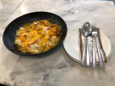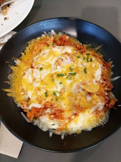 ไก่ผัดซอสพริกเกาหลี ราด mozzarella , cheddar และ parmesan cheese