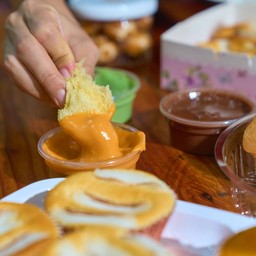 100% ของรีวิวบอกว่าร้านนี้เหมาะกับ ประหยัด!ปังพอนด์ดอนหวาย มาขายในงานที่ซีคอนบางแค เรามาเจอในวันนี้ ไม่แน่ใจว่างานมีถึงวันไหนครับ ลองเสิร์ชในเพจห้างดูได้ครับ ขนมปังมี 2 แบบ ชิ้นใหญ่ วิธีทาน คือ จิ้มกับสังขยา ชิ้นจิ๋วสอดไส้ พร้อมทาน คล้ายๆเอแคลร์ แต่เป็นแป้งขนมปัง ราคากล่องละ 70 บาท เท่ากัน เราเลือกมาเป็นขนมปังสังขยาชาไทย ขนมปังนุ่มมากๆ ชาไทยหอมๆ รสหวานมันกำลังดีครับ มีรสชาเข้มกำลังดีดูเพิ่มเติม