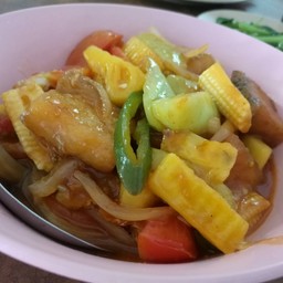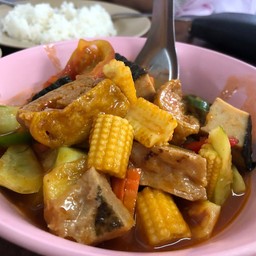 หมึกทอดกระเทียม จิ้มผิดโดนกระเทียมยังอร่อย คือแป้งชุบทอดอร่อย หมึกสดไม่คาวไม่เหนียว จิ้มซอสจะอร่อยเพิ่มแต่ไม่จิ้มเลยก็อร่อยอยู่แล้ว แกงเหลืองต้มยำ อร่อยมาก เข้าถึงพริกแกง มะเขือผัดหมูสับ หอมใบโหระพา ซอสเข้าถึงมะเขือ จานใหญ่เครื่องแน่น หมูผัดพริกแกง อันนี้อร่อย พริกแกงดี ผัดเปรี้ยวหวาน อันนี้สดชื่น ชอบมาก เพื่อนมาช้าคุณป้าไปอุ่นอาหารให้ด้วยดีมาก อยากให้มีร้านแบบนี้ที่ กรุงเทพฯดูเพิ่มเติม