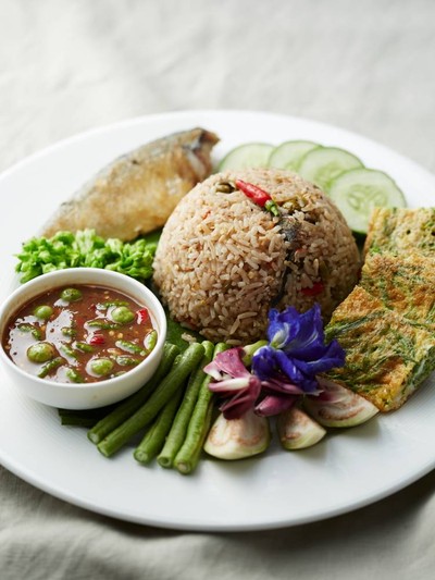 ข้าวผัดน้ำพริกกะปิปลาทู ไข่ชะอม
